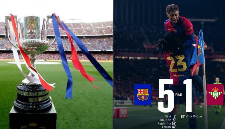 حقق نادي برشلونة فوزًا كبيرًا على ضيفه ريال بيتيس بنتيجة 5-1 في دور الـ16 من كأس ملك إسبانيا، ليتأهل بذلك إلى الدور ربع النهائي.