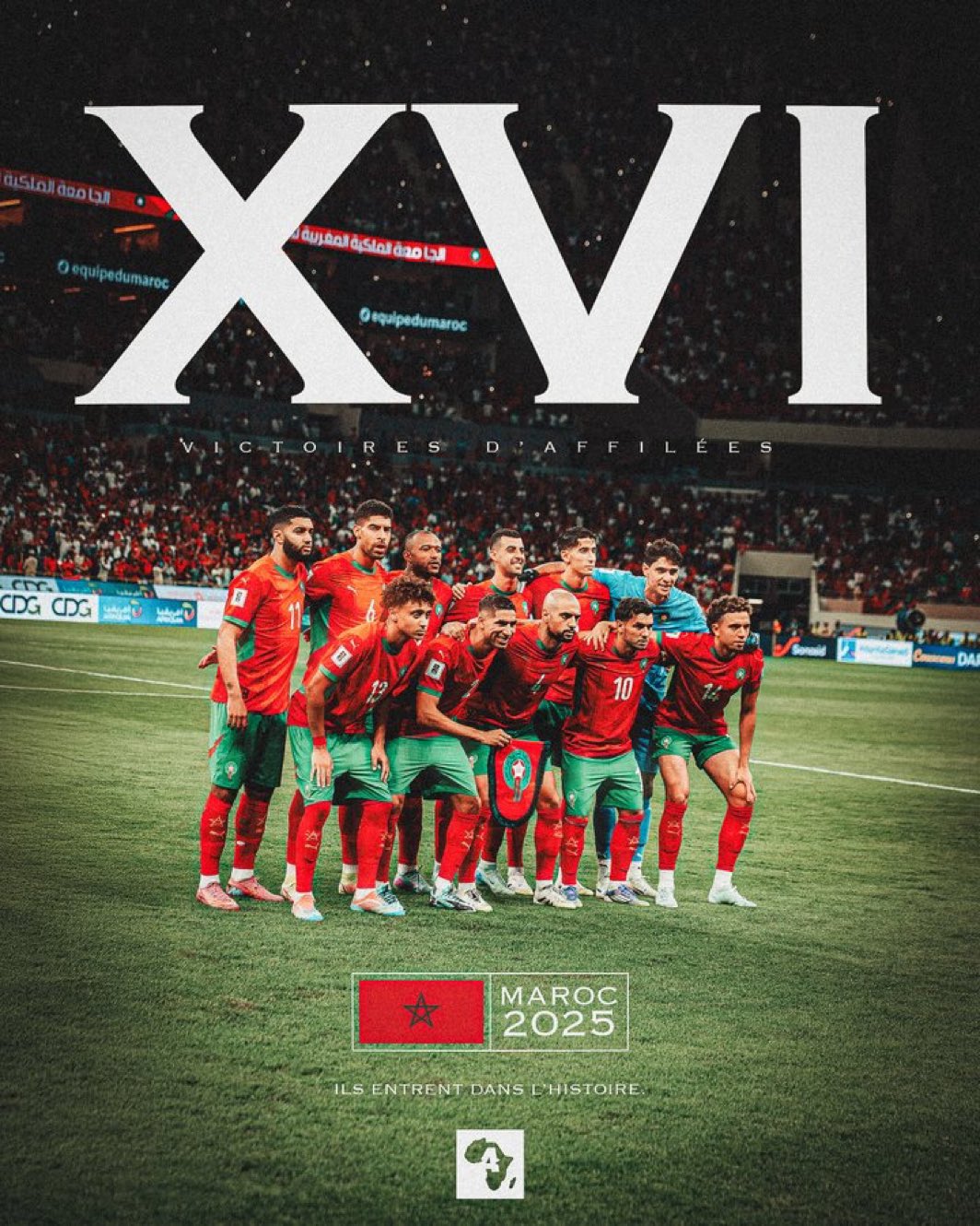 وبهذا الفوز، واصل المنتخب المغربي سلسلة نتائجه المبهرة، محققًا الانتصار السادس عشر تواليًا في مختلف المسابقات، ليُصبح صاحب أطول سلسلة انتصارات في تاريخ المنتخبات، متجاوزًا الرقم القياسي السابق المسجّل باسم منتخبي ألمانيا وإسبانيا (15 فوزًا متتاليًا)، ويدخل بذلك موسوعة غينيس للأرقام القياسية.