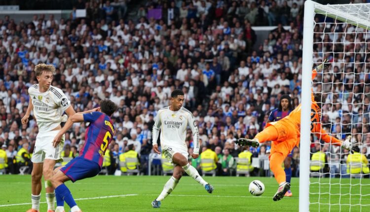 برشلونة عاد بقوة في الدقيقة (38)، حين نجح فيرمين لوبيز في إدراك التعادل بعد تمريرة رائعة من ماركوس راشفورد، لكن ريال مدريد استعاد التقدم قبل نهاية الشوط الأول عبر جود بيلينجهام في الدقيقة (43)، بعد كرة عرضية من فينيسيوس تابعها بمهارة داخل الشباك.