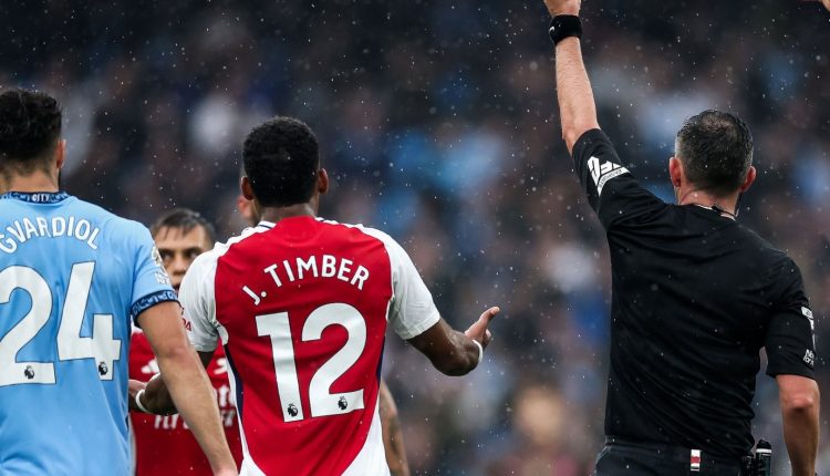 و قبل نهاية الشوط الأول بثواني ،وجه الحكم مايكل اوليفير البطاقة الصفراء الثانية للبلجيكي تروسارد ،الذي غادر ارضية ملعب المباراة بالبطاقة الحمراء.
